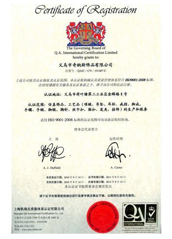 奇納斯有限公司認(rèn)證